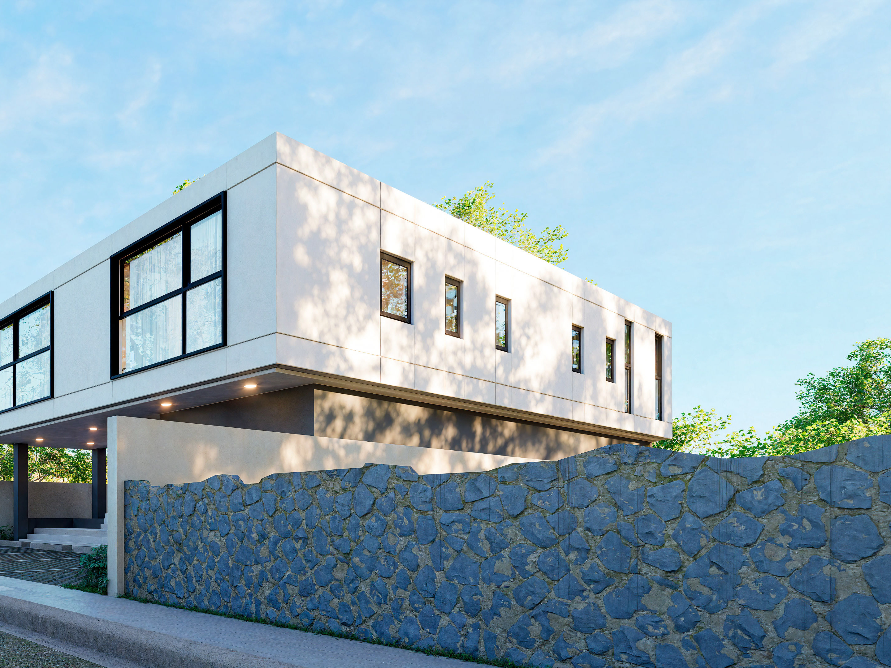 La Residencia MC11 es una obra que refleja modernidad, elegancia y funcionalidad, diseñada para ofrecer un estilo de vida exclusivo en un entorno urbano privilegiado. Este proyecto combina arquitectura contemporánea con elementos naturales, logrando un balance perfecto entre privacidad, confort y estética. Desde el primer vistazo, la fachada de la Residencia MC11 impacta con su diseño innovador. Los paneles de celosía metálica en tonos oscuros no solo añaden un carácter distintivo, sino que también brindan privacidad y permiten el juego de luces y sombras a lo largo del día. El contraste entre las líneas limpias de las paredes blancas, los detalles en concreto expuesto y la integración de vegetación trepadora en el portón principal refleja un diseño consciente y sostenible. La entrada frontal, marcada por una distribución simétrica y elegante, destaca como un portal que invita a descubrir la calidad y el cuidado en cada detalle del interior.